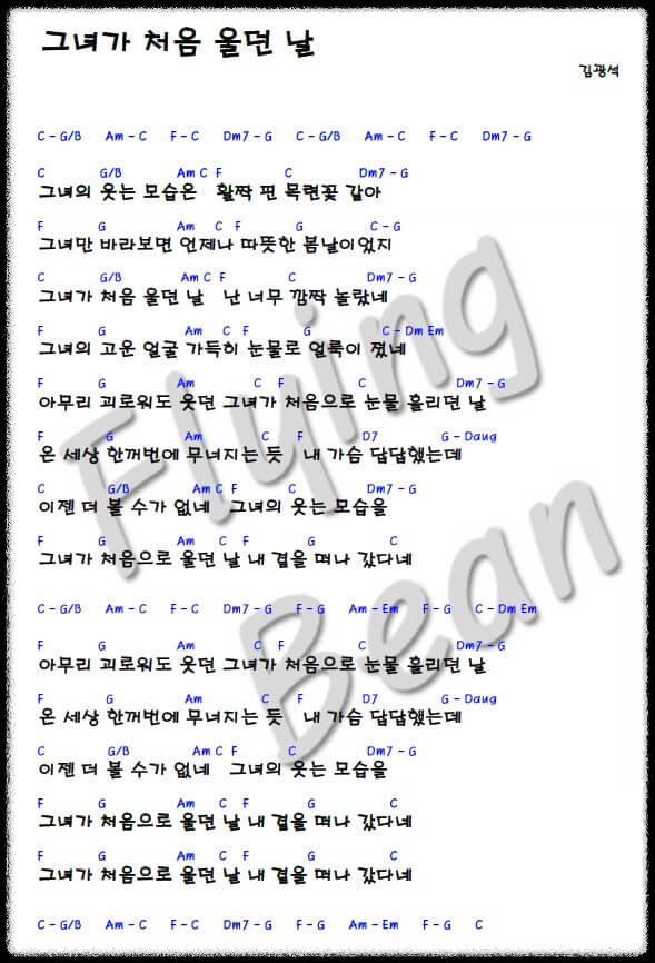 그녀가 처음으로 울던 날 내 곁을 떠나갔다네